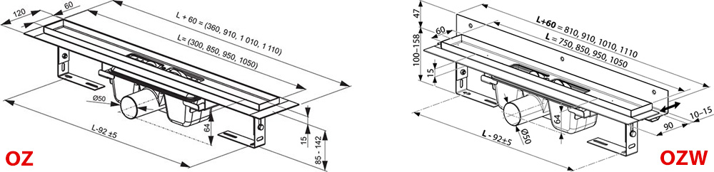 Žlaby vyrábíme v různých délkách od 300 do 1050 mm. A tak je můžete použít kdekoliv, od malé niky až po velkorysé sprchové kouty na míru. Zvolte si model do prostoru nebo ke stěně sprchového koutu.