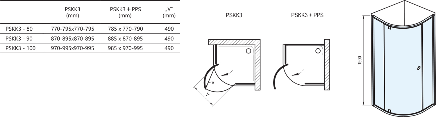 Výrobok tvoria dva pevné rovné diely a jeden ohýbaný diel ako otočné dvere. Otočením výrobku o 180° získate ľavý alebo pravý variant otvárania dverí. Montuje sa do obloženého rohu kúpeľne na vaničky Ravak Elipso Pro alebo priamo na podlahu so zabudovaným odtokovým žľabom či podlahovou vpustou. Pokiaľ nedisponujete vymurovaným rohom, priečku môžete nahradiť pevnou stenou typu PPS. Pomocou nastavovacích profilov BLNPS sa výrobok dokáže prispôsobiť stavebnému otvoru až o 4 cm na každej strane.